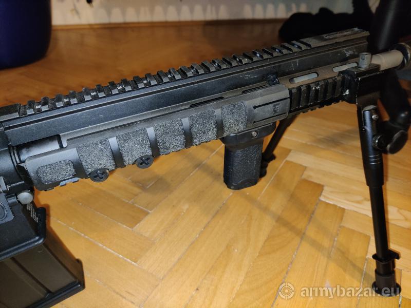 Popis: Nabízím Hk 417 celokov poháněnou plynem od vfc licencovanou od Hk díky umarexu. Zbraň je vybavena tlumičem, dvojnožkou, přední rukojetí a 4x zásobníkama navíc. Je provedena s realistickým ražením a díky tomu že je to model dle asiíské normy není nikde ražení provedení v 6mm ale v pravé ráži 7,62 nato. Jediný chybějící díl je natahovací páka závěru jinak je plně funkční. Žádám vás v případě zájmu o zaslání sms ohledně této nabídky, POUZE osobní vyzvednutí v Hk. Při rychlém jednání možnost slevy.