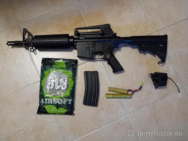 Popis: Zdravím Prodávám elektrickou m4, plně funkční, má v sobě novou kovovou hop-up komoru, jenom baterie je starší a asi by potřebovala vyměnit a v předpažbý je ulomený kousek plastu co drží vnější hlaveň ale vše v pohodě drží, prodám s baterií, nabíječkou, zásobníkem a plným pytlem kuliček. Reaguji jen na SMS Osobní předání nebo poslání přes zasilkovnu s možností platby dobírkou nebo převodem Nová m4 stojí okolo 2800kč viz. Odkaz https://airsoftpro.cz/cz/airsoftove- zbrane/elektricke-dlouhe- aeg/m4-m16-sr25-416/airsoftova- zbran-m4a1-carbine- sportline-cm.503-cerna-detail