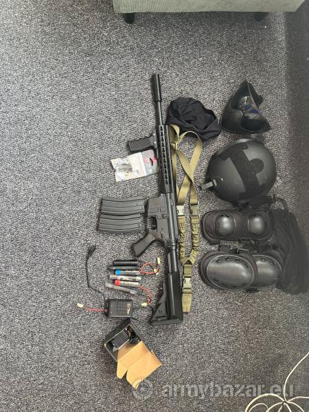 Popis: Prodam jako celek ale je i moznost prodat veci zvlast (cena za celek) Zbran: M4 sportline černa Vyrobce: cyma Parametry: princip funkce -elektricka Energie projektilu 1,6 J Dostrel-56m Vaha kulicek-0,25g Baterky : NiMH 8,4V/ 1600mAh Nabejecka:NiMH nabiječ Info na whatsap TELEFONI CISLO: 606 059 312