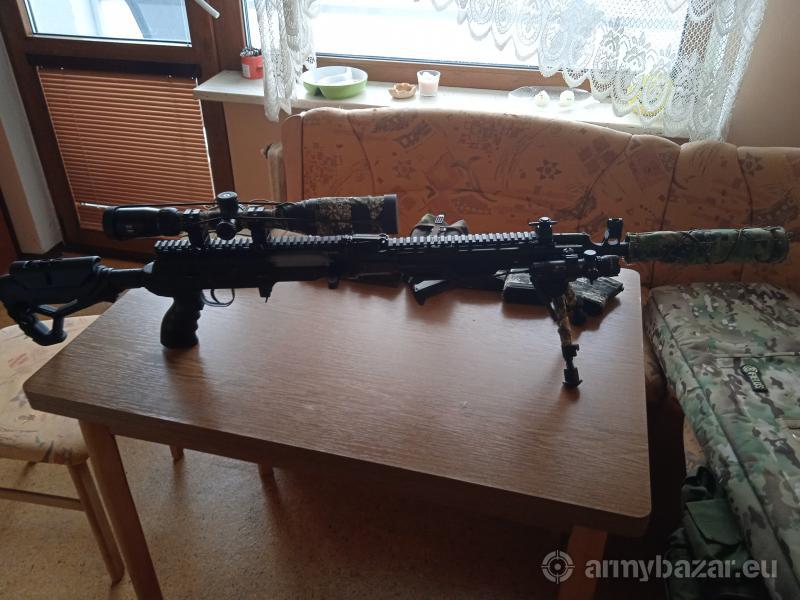 Popis: Airsoft vybavení+SVD manuál. Prodám SVD manuál dělaná na zakázku u Carlose Shiftyho , na zbrani je optika Thera optics 2, 5-10x40AOE, funkční tlumič, laser zaměřovač, teleskop nožičky.5xsumka, náhradní optika,3xzasobnik do SVD , taška na dlouhou zbraň, taktická vesta.Osobní předání v Chebu