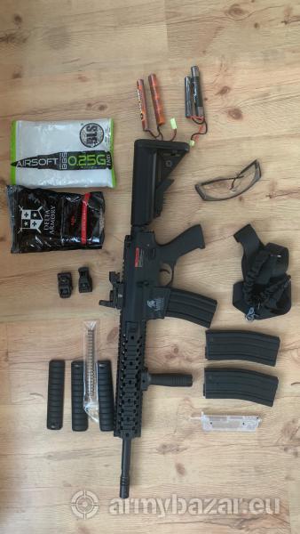 Popis: Zdravím, prodám tuto Airsoftovou zbraň.Stav je jako nová, pouze asi 5x použitá. Přidám k ní vše co je na fotce a pokud byste měli nějaký dotaz, nebo chtěli více a detailnější fotky, stačí napsat.Prodávám ji z důvodu nevyužití a pouze mi leží doma. Preferoval bych osobní předání i s možnosti vyzkoušení ve Dvoře Králové n.L.