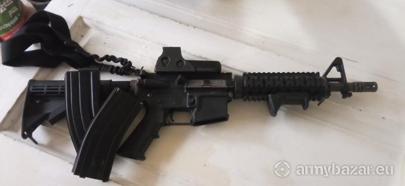 Popis: Prodávám M4A1 od WE. Celokov,open Bolt. Téměř nehraná,ale servisovaná všechno funguje tak jak má. Poslední akce v srpnu v Ketkovicích- naměřeno 135m/s s 0,20Bb Ke zbrani přidám - 2x zásobník, 2x jednobodový popruh (zelený a černý) , "halogenový koliminátor" :D funkční, ručka na předpažbí Navíc přidám nošený ale funkční nosič plátů od emersonu, nový pakul, taktický opasek(černý), pár pistolových sumek, 3x sumka na M4 zásobník(oliva) plus jedna sumka na granát či vysílačku multicam.