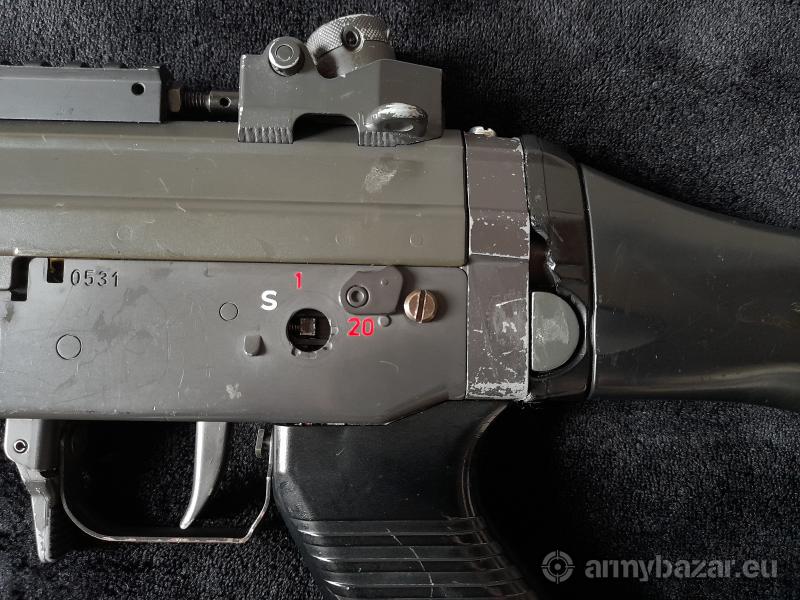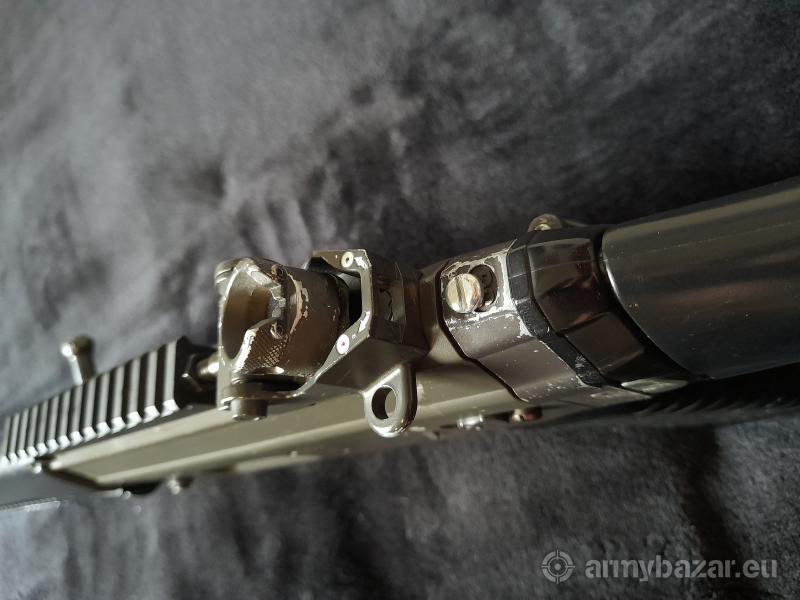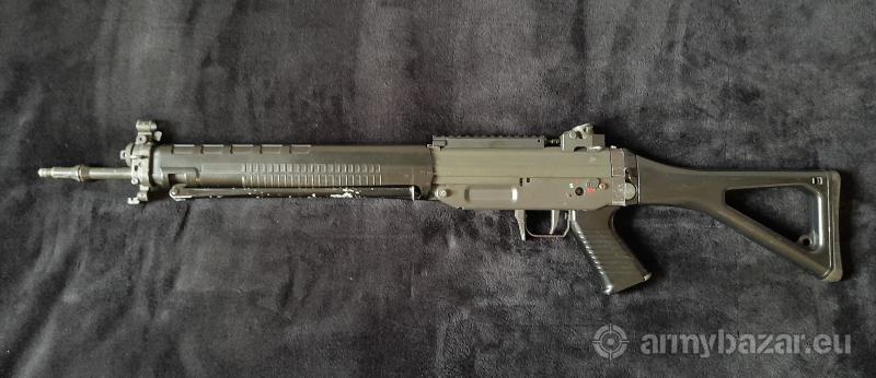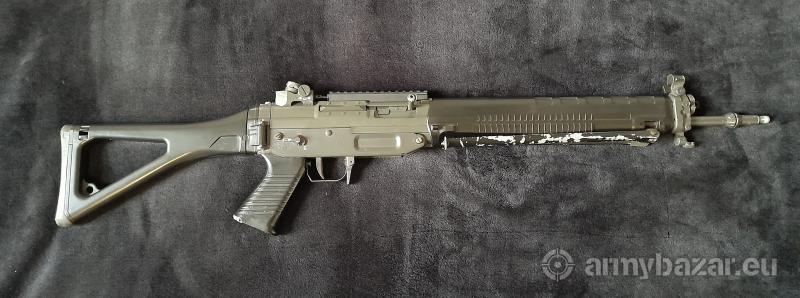 Popis: Nabízím nekompletní SIG 550 od Tokyo Marui. Zbraň už má své nejlepší časy za sebou, tudíž prodávám spíše do sbírky nebo na díly. Teoreticky by měl být funkční, nicméně chybí levý přepínač střelby, zásobník a ústí hlavně. Co se těla týče, tak už má hodně za sebou. Pažba se nedá sklápět, je slepená a sešroubovaná, tak aby držela, u hledí chybí štelování výšky. Tělo je celkově takové rozklepané a chtělo by řádnou péči, kdo je manuálně zručný, určitě si se zbraní ještě dost vyhraje. Prodávám tak jak je na fotkách, žádné ostatní příslušenství k němu bohužel nemám. Případné dotazy rád zodpovím, detailnější fotky pošlu na vyžádání. Cenu nechám nejvyšší nabídce.